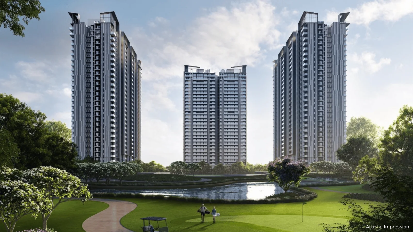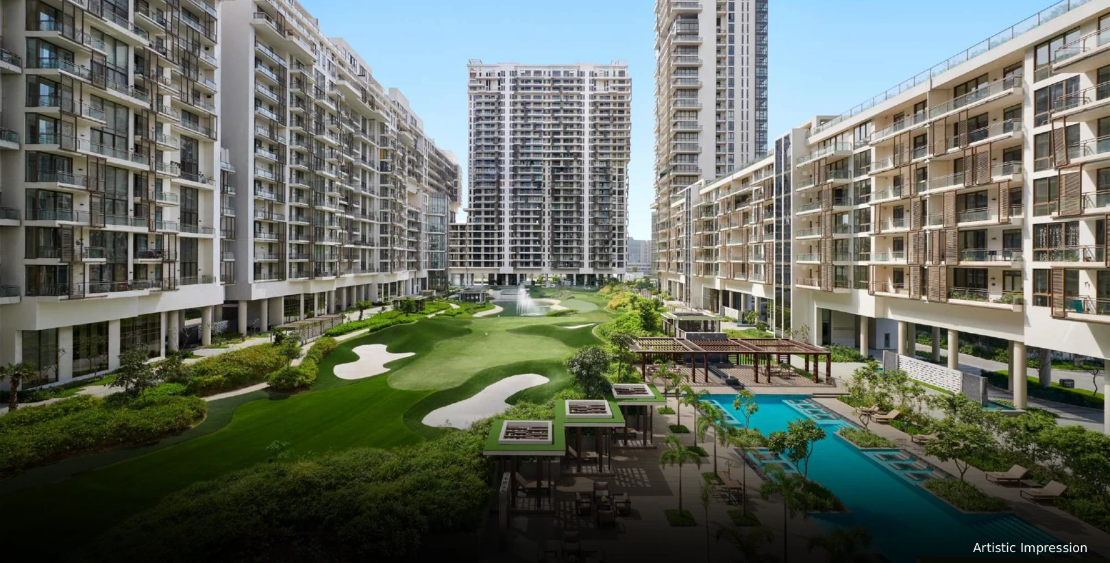 The development features an 80% green space composition, along with vegetation and water elements that create a revitalizing and relaxing lifestyle atmosphere. Families and professionals find this development perfect because it offers premium amenities and represents a blend of sophistication, modern amenities, and nature-inspired living, making it an attractive investment and a desirable home. Strategically located, the project offers seamless connectivity to NH-8, Dwarka Expressway, and Southern Peripheral Road, providing easy access to Delhi and other NCR regions. The location provides residents with practical conveniences because it sits close to educational facilities and healthcare centers and shopping areas together with business zones.